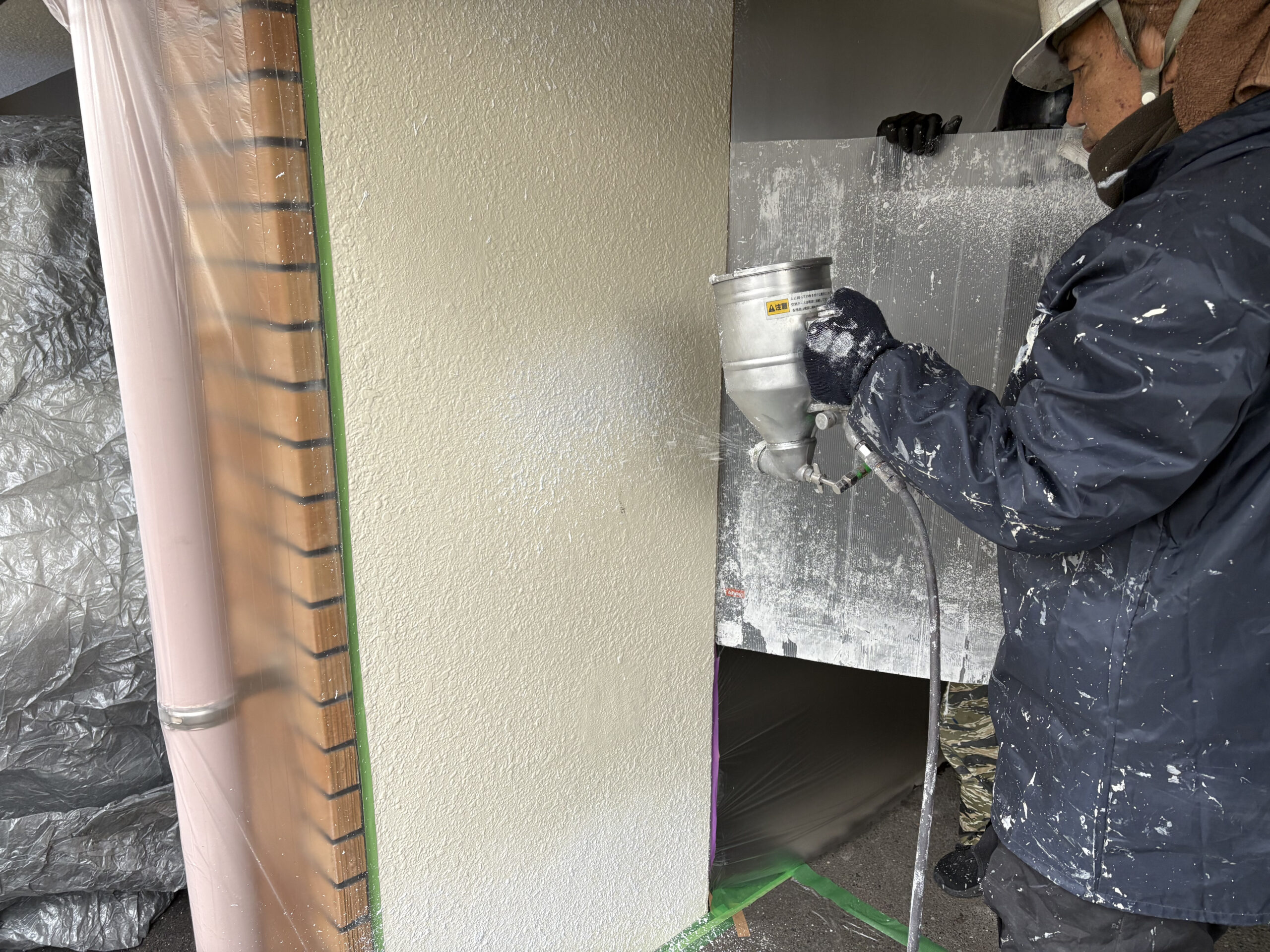 吹き付け完了!今日はここまでです。次は外壁塗装をします。